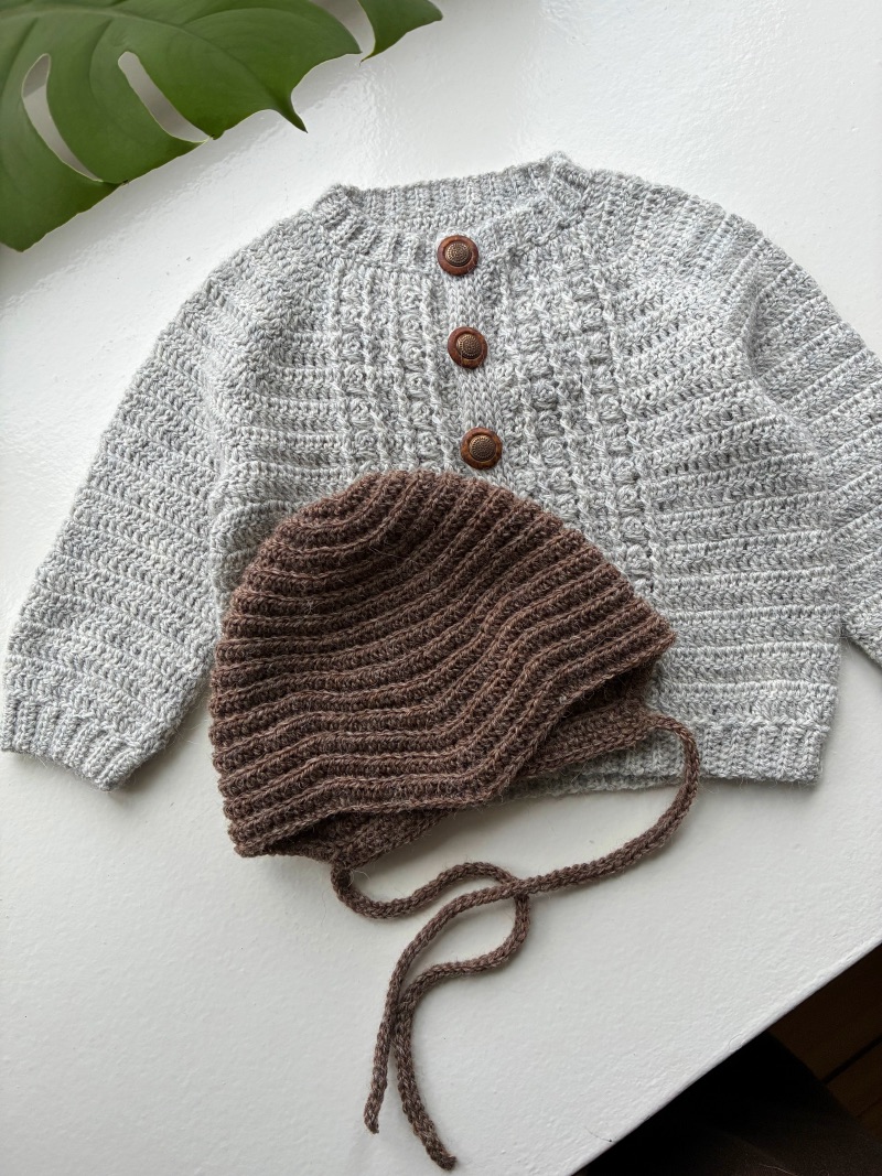 Hæklenål: 3 mm, eller den nål du skal bruge for at ramme trøjens hæklefasthed. Derudover skal du bruge en nål, der er 0,5 mm mindre til ribkanterne.
