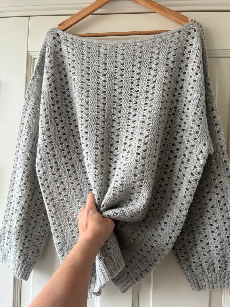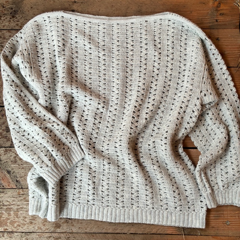Trøjen kan fint hækles i andet garn, så længe trøjens hæklefasthed kan overholdes.