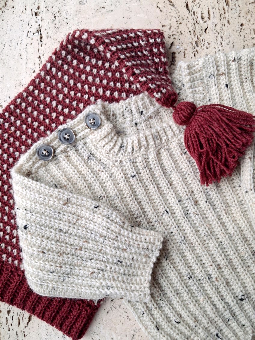 Felix sweateren kan hækles i str. (0-3 mdr.) 3-6 mdr. (6-9 mdr.) 9-12 mdr. (12-18 mdr.) 18-24 mdr.